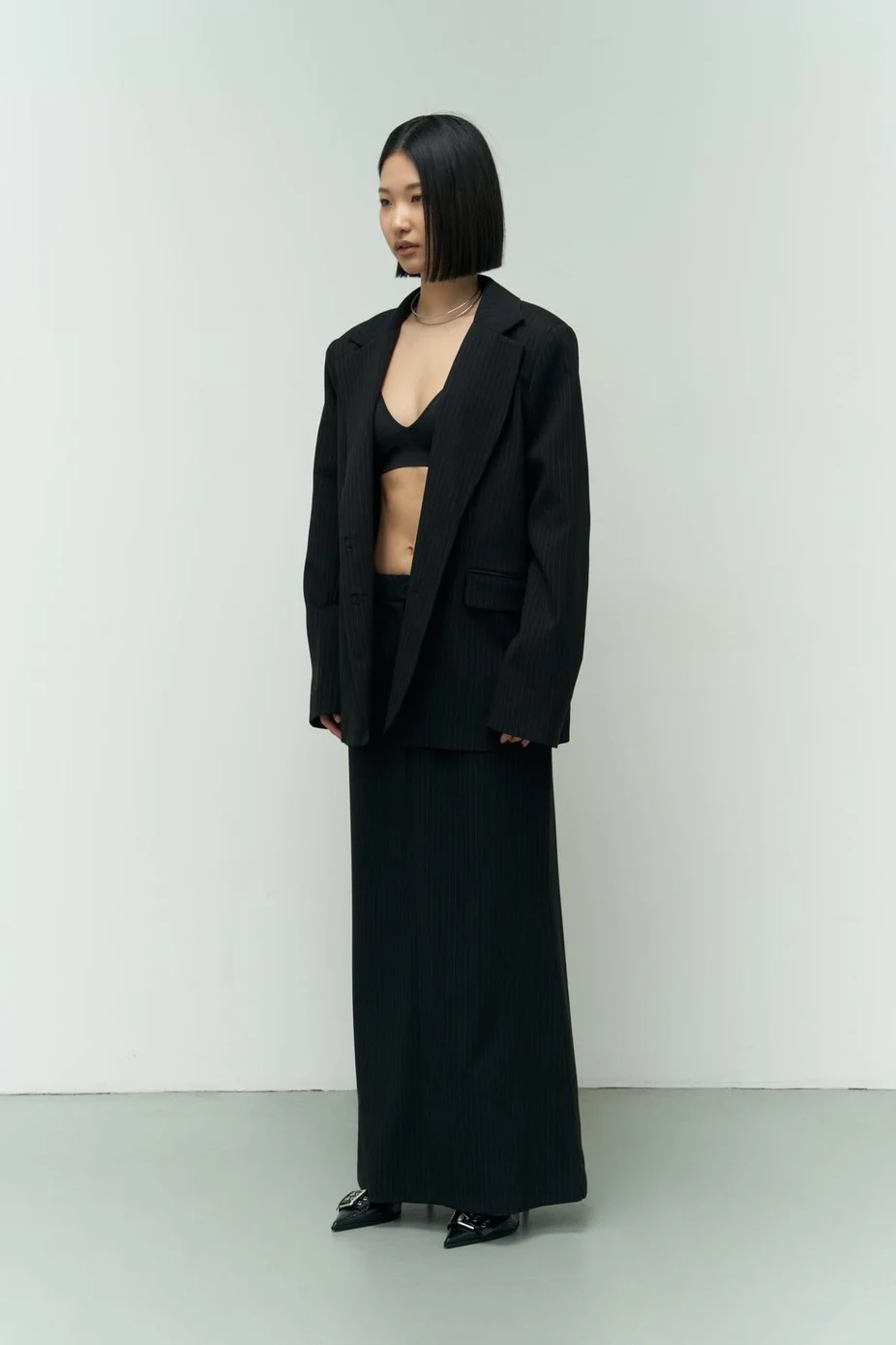 بلیزر و دامن مشکی راه راه برونو