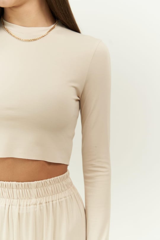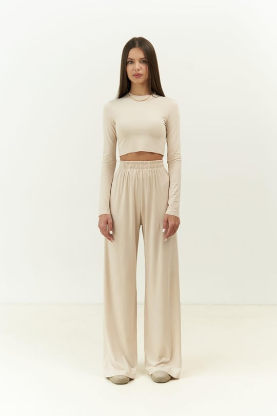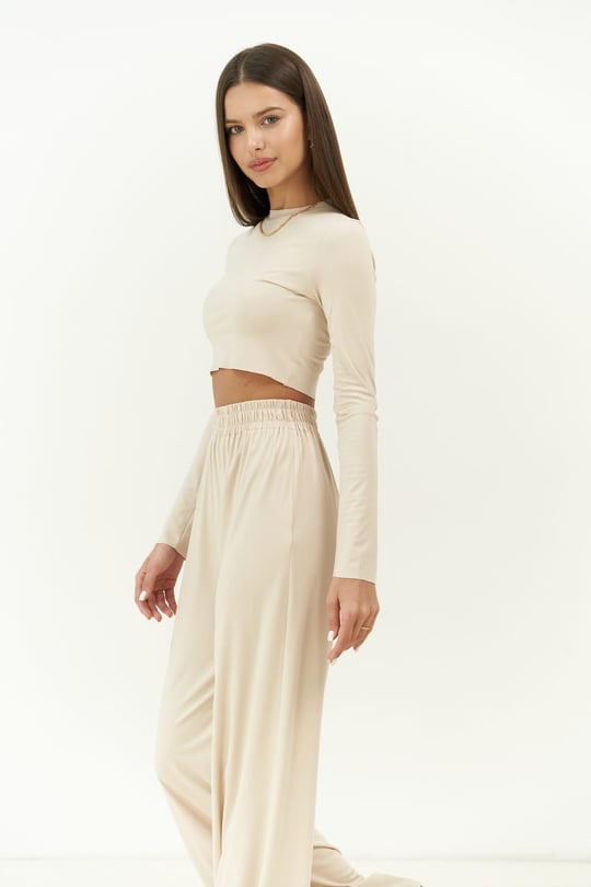 ست شلوار با کراپ کوتاه آستین بلند کرم Jany
