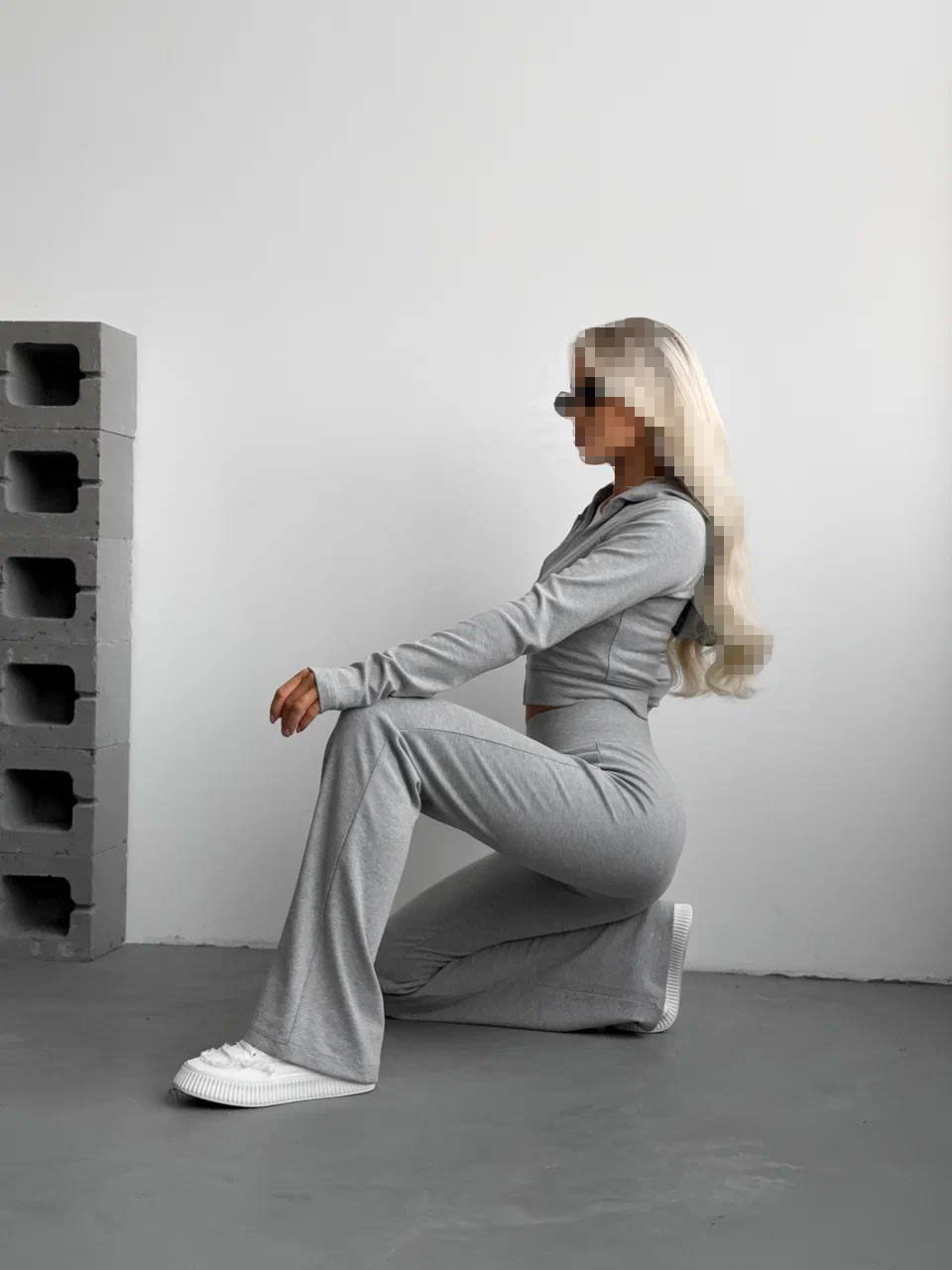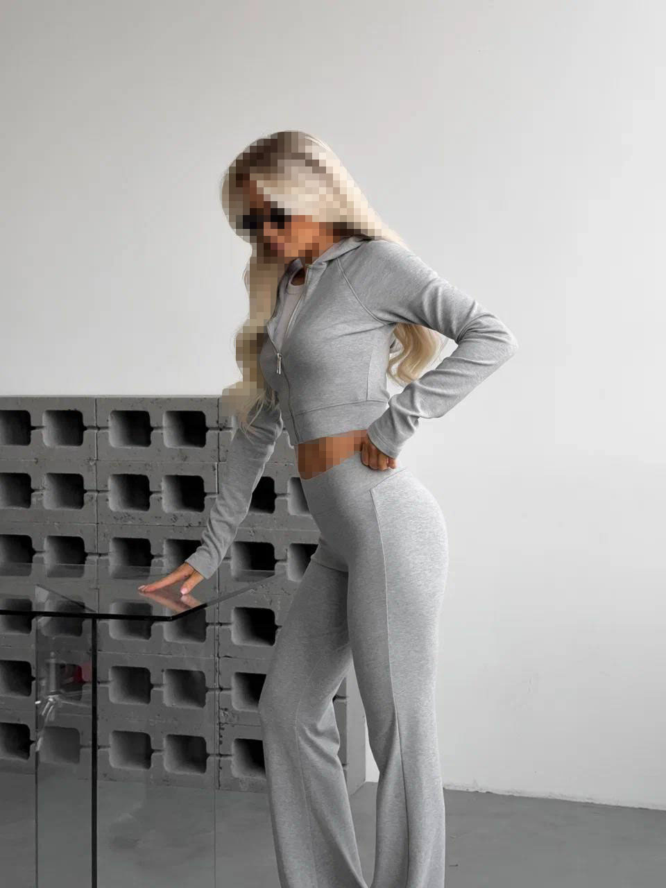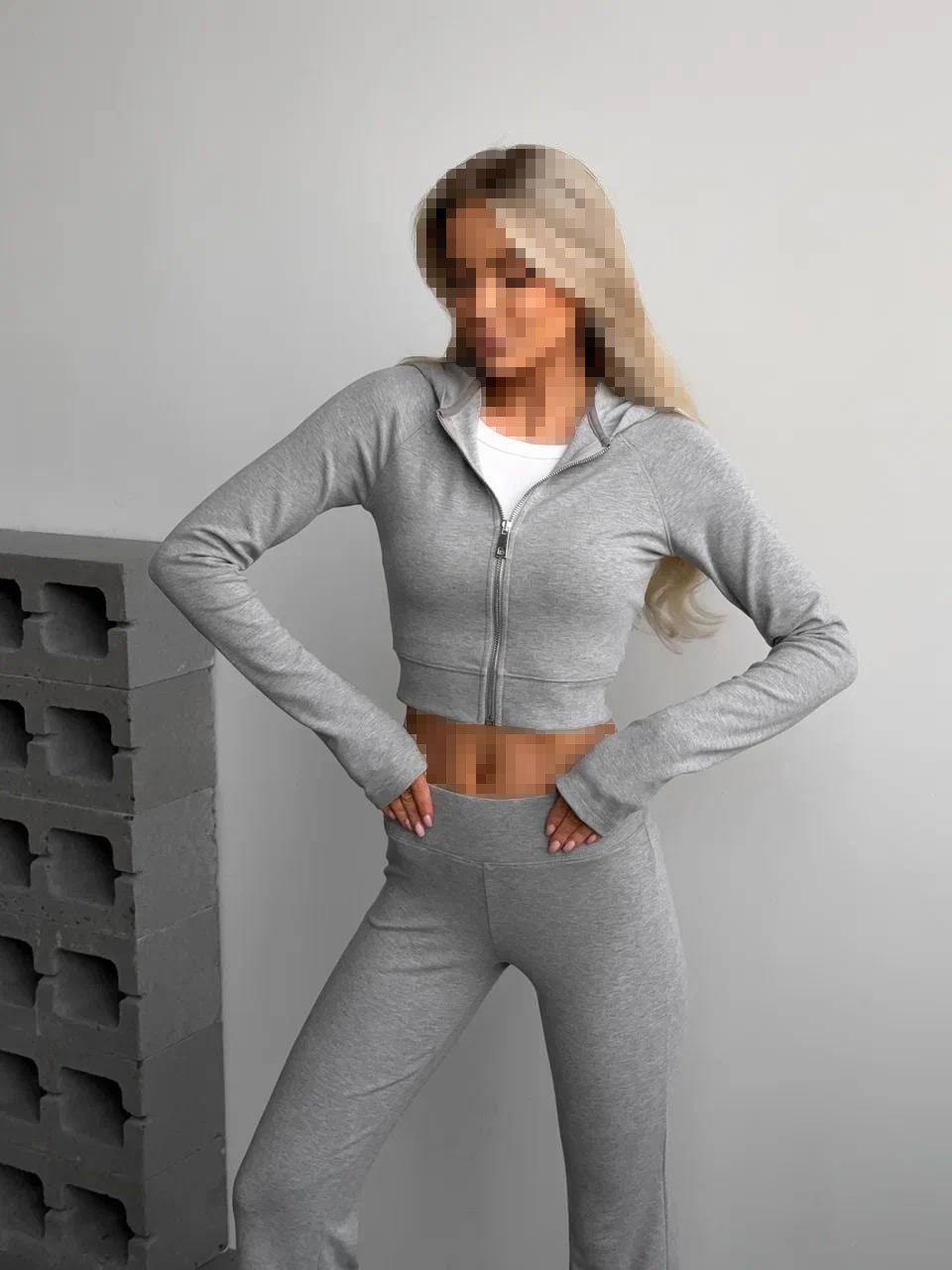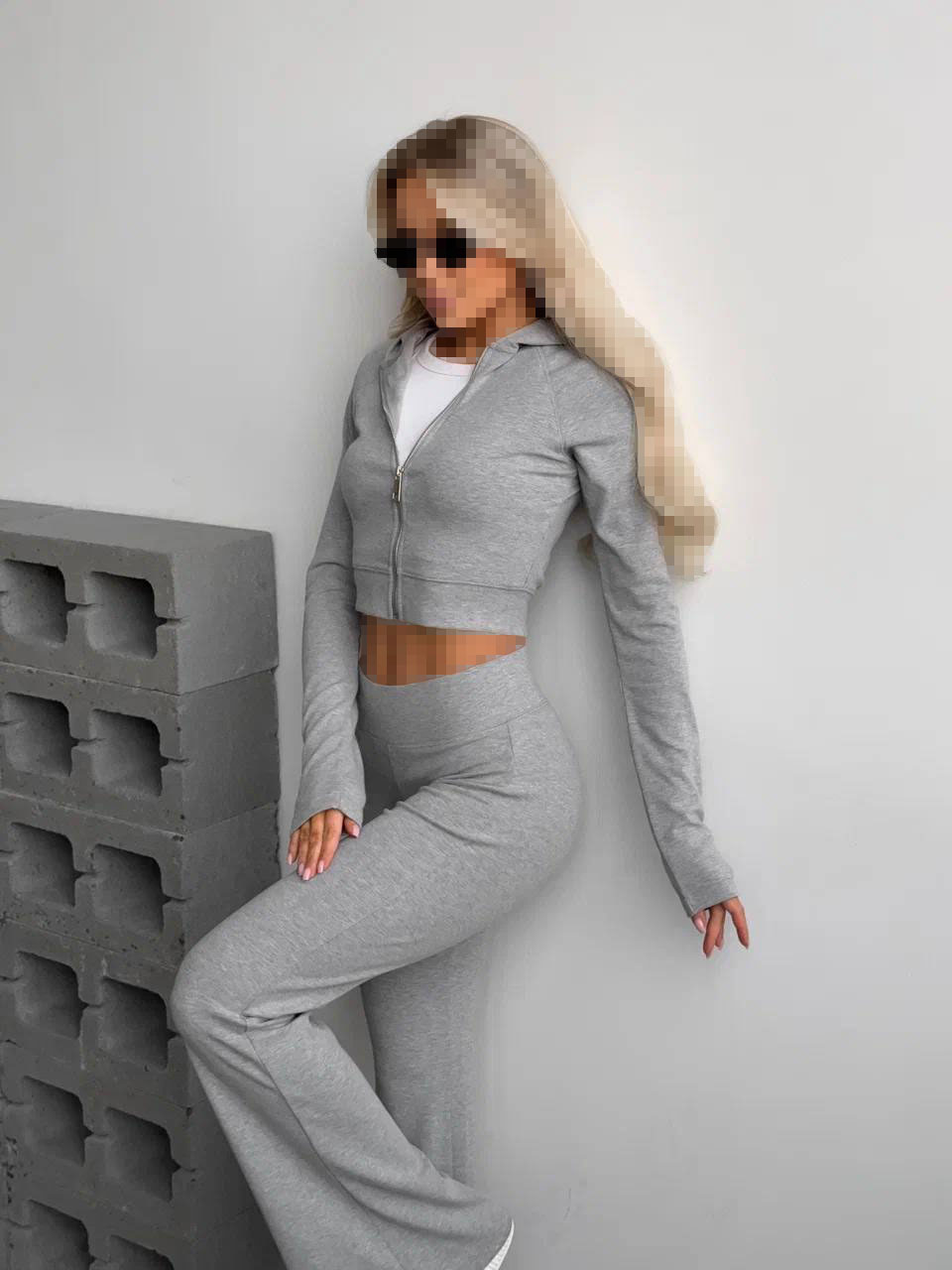 ست کراپ سویشرت و شلوار طوسی روشن