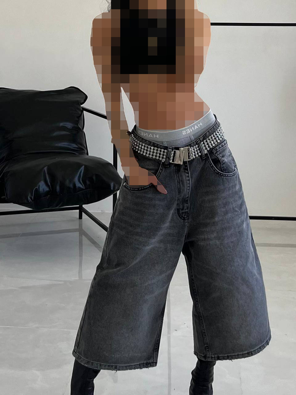 شلوارک جین ذغالی