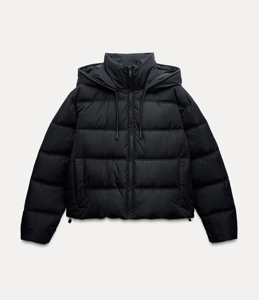 کاپشن بمبر با آستر لحاف دوزی. یقه چاک دار و آستین بلند با شانه های افتاده. جیب های جلو. لبه کشسان. زیپ جلو.
