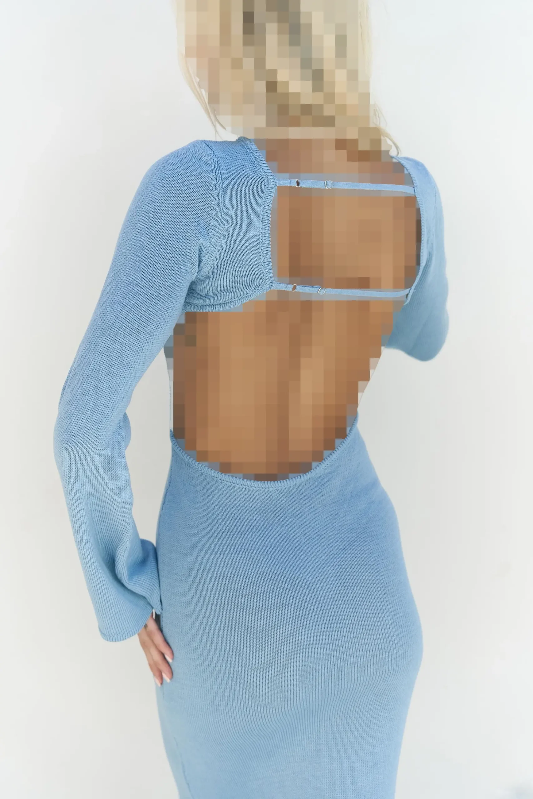 Nadias Window Detail Blue Knitwear Long Dress