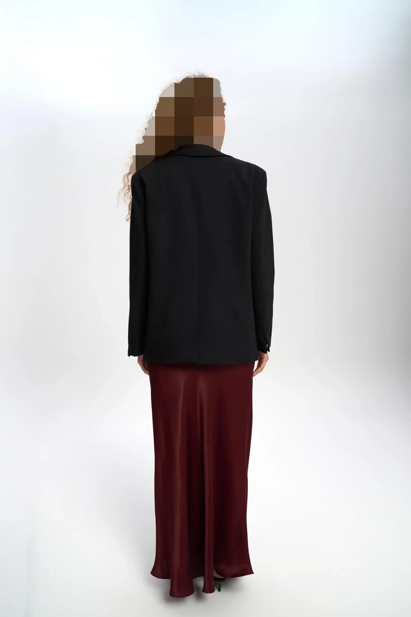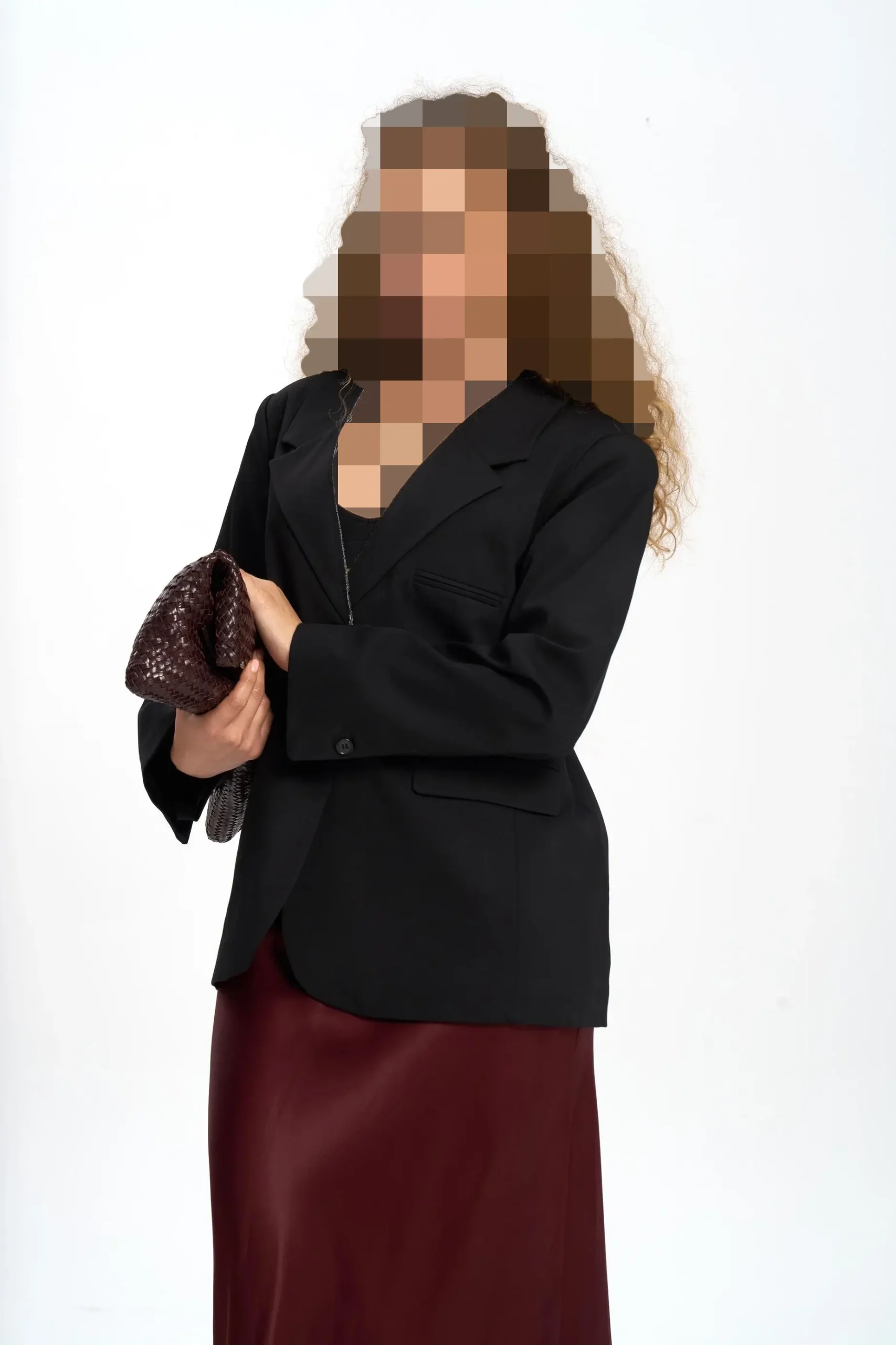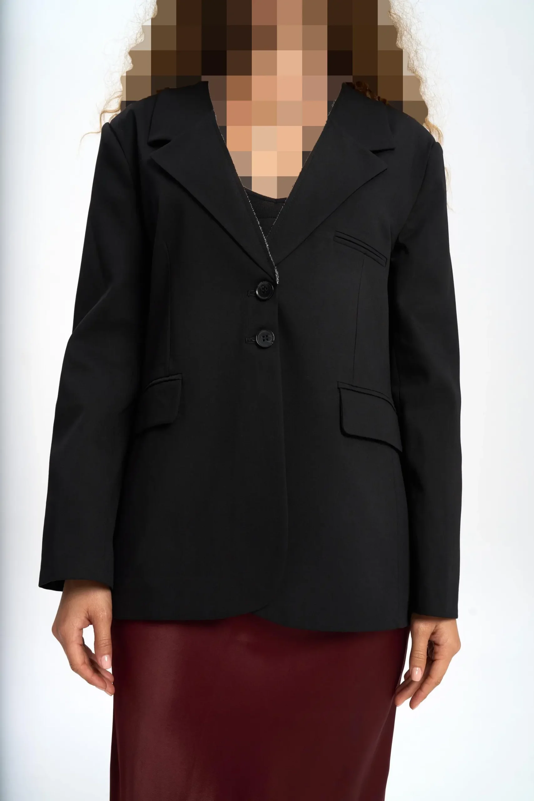 یک کت آستین بلند و پددار با یقه تا شده و ظاهری چیندار.
