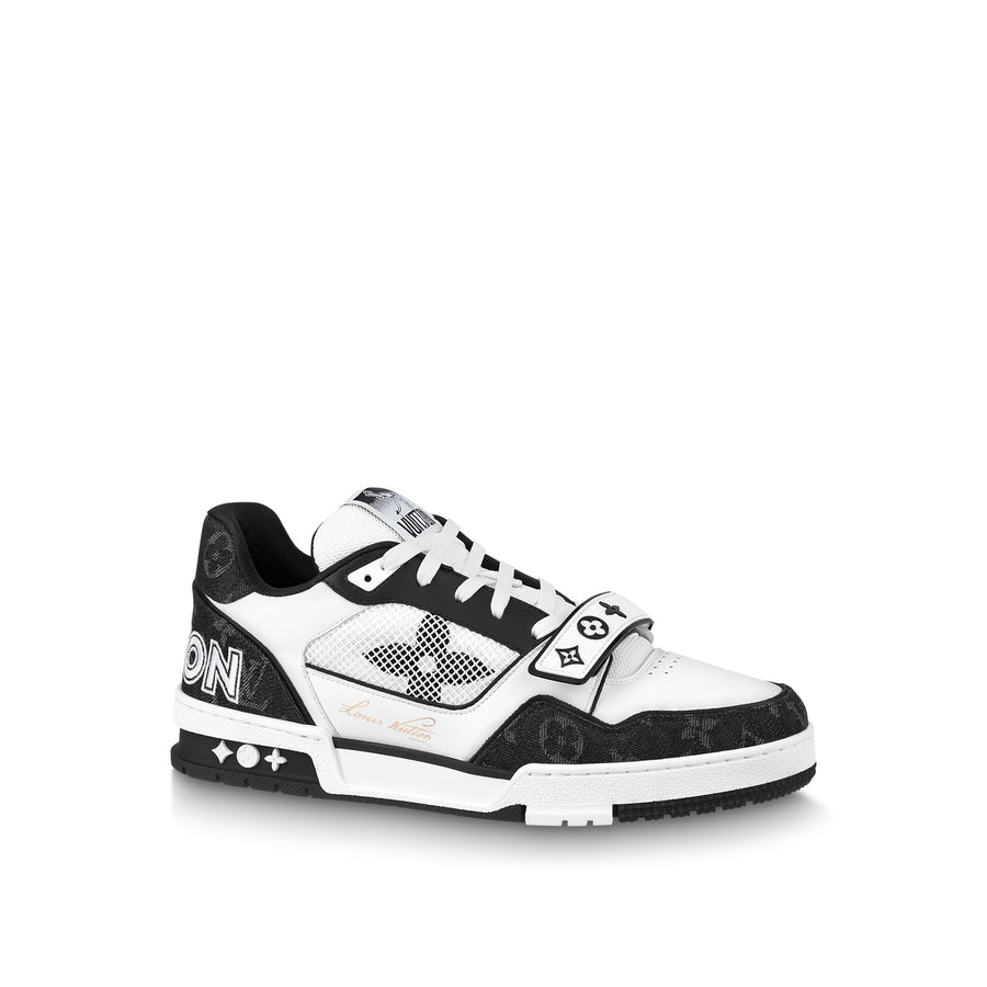 LV TRAINER GREEN MONOGRAM DENIM WHITE